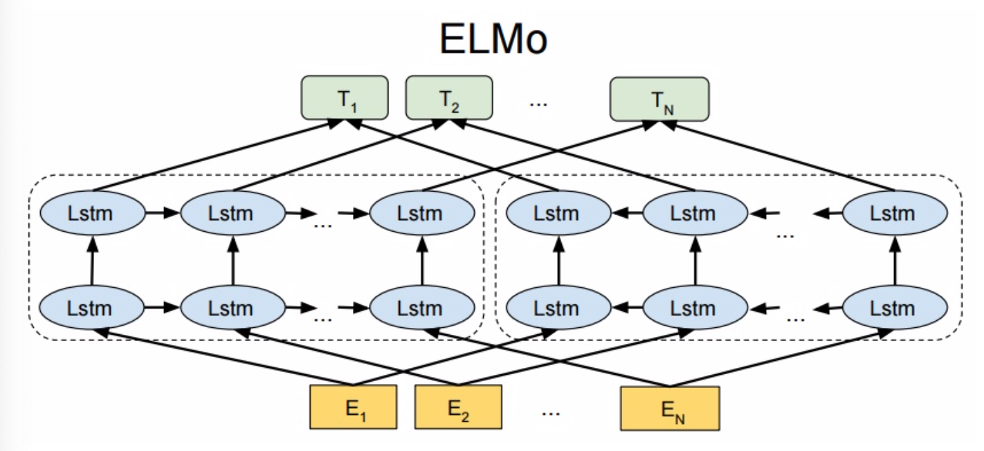 - ELMo架构总体上采用了双向双层LSTM的结构.